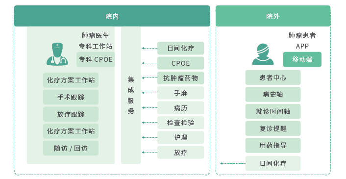 聚焦腫瘤疾病??圃\療特點,打造覆蓋患者診前、診中、診后的全流程專科管理系統(tǒng),形成連接疾病診斷、MDT 會診、影像調(diào)閱、放化療方案制定、患者隨訪等關(guān)鍵環(huán)節(jié)的一體化診療閉環(huán)。